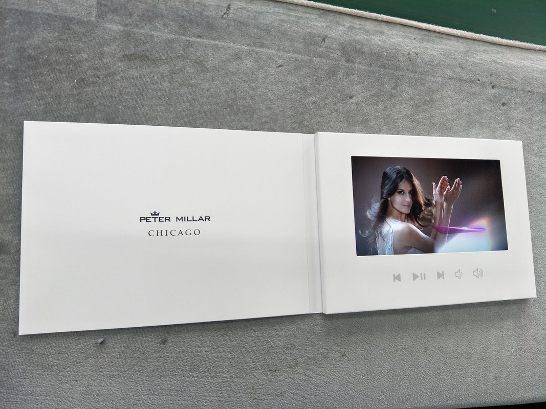• Function: Magnetic on/off switch activates video playback when brochure is opened