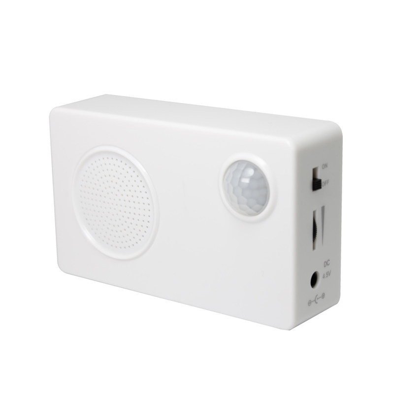 The device utilizes advanced motion detection to identify human activity within its range, triggering audio playback without manual intervention.
